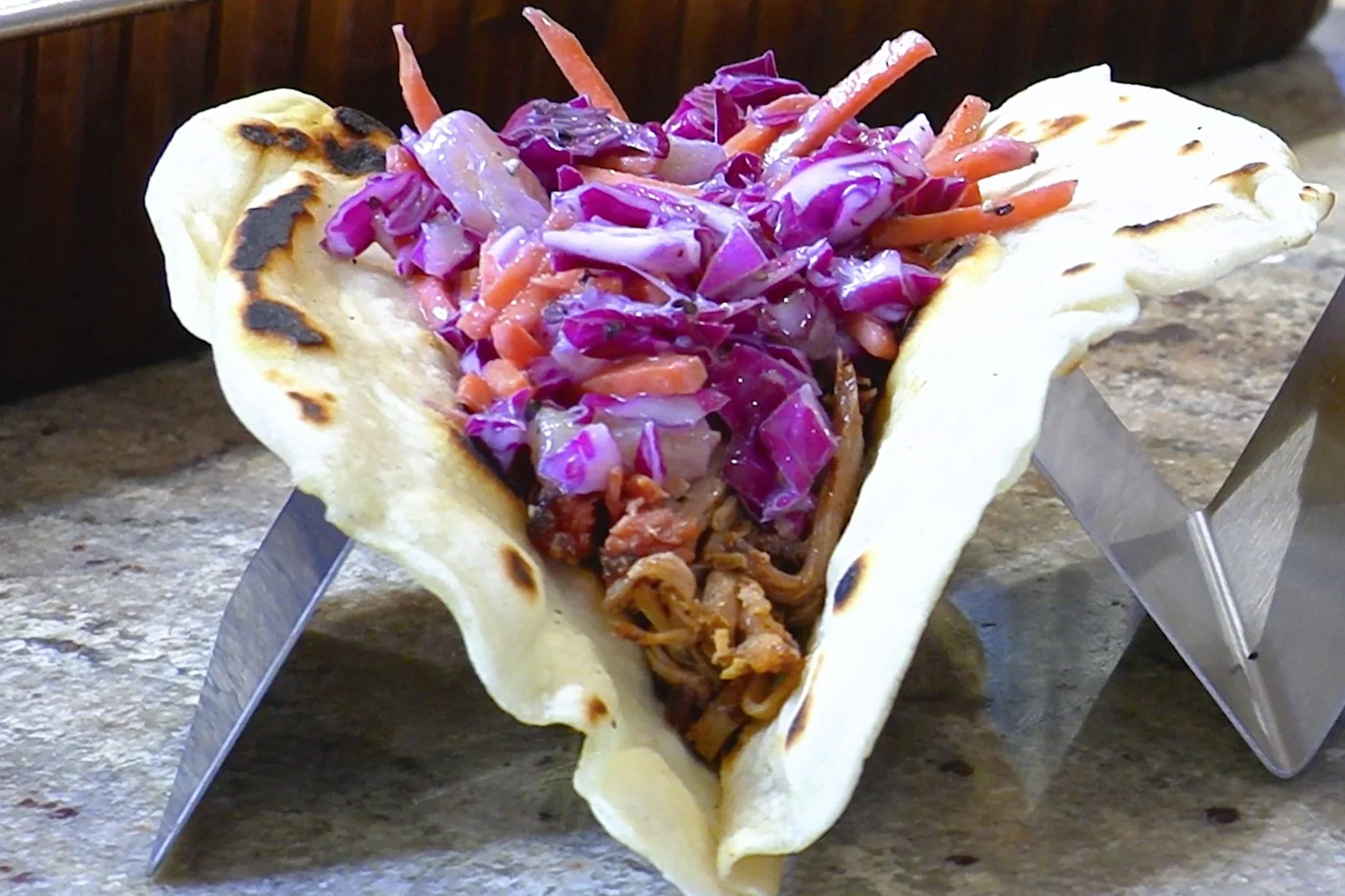 Layering: Start with a base of pulled pork, add the slaw, and then top with your favorite taco toppings like fresh cilantro or a squeeze of lime.