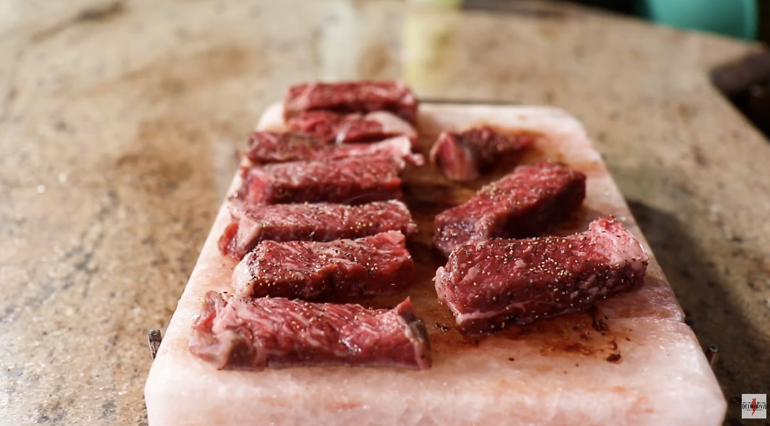 For this cook, I seared Wagyu New York Strip steaks directly on a fully preheated salt block to test heat retention, crust development, and flavor impact.